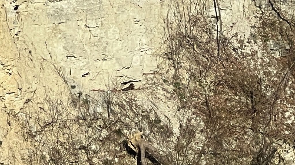Deze Oehoe trekt jaarlijks veel bekijks! (Vrijdag 27 februari ’26) Op bovenstaande foto zie je de oehoe in het midden van de foto liggen!